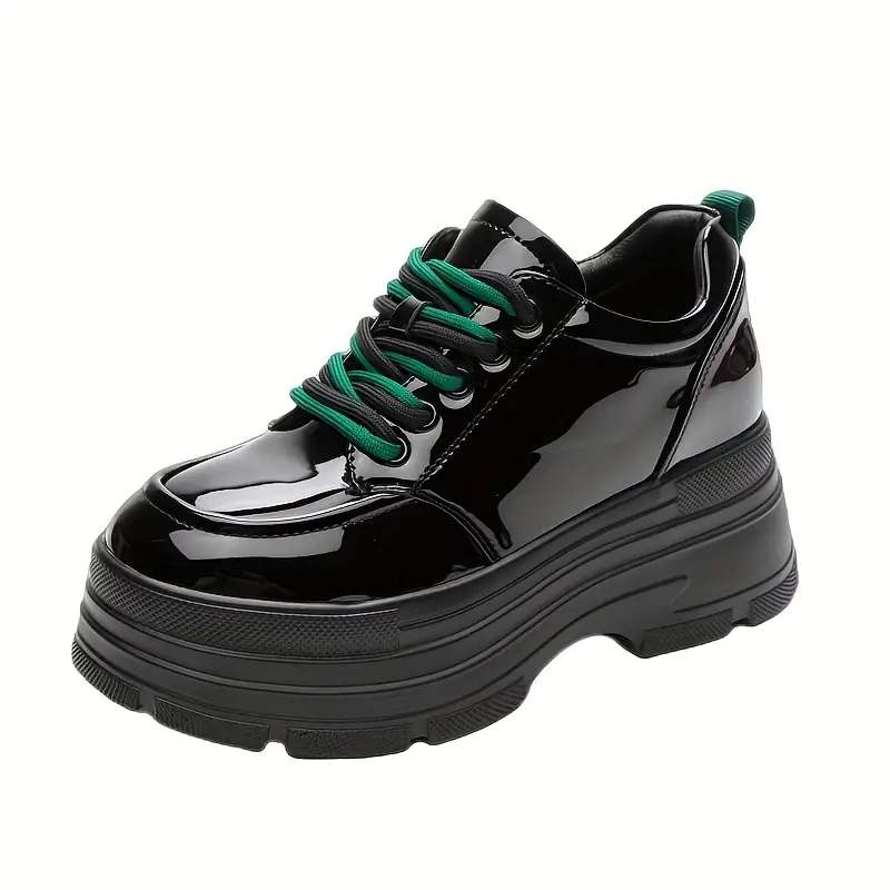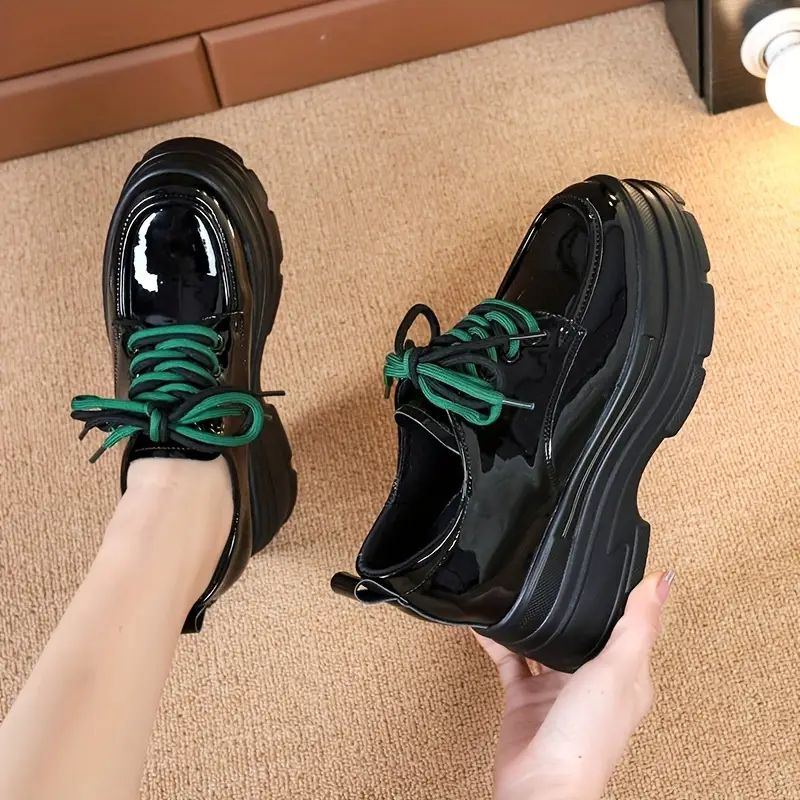 Կանացի հաստ հարթակ լոֆերներ սպիտակ արհեստական կաշվից ժանյակավոր դետալներ հարմարավետ ռետինե տակացուով հարմարավետության և հասակի բարձրացման համար, ժամանակակից կոշիկներ | Երկարակյաց ռետինե ներբան